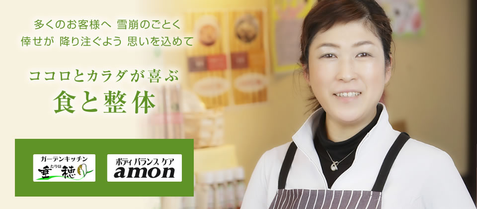 人間の持つ本来の自然治癒力を高め、心身共に癒し、笑顔でご家庭に・社会に戻られるお手伝いをする事や、自分の体と心を大切にする事、ストレスと食事がもたらす身体への影響を伝えていく事を最も大切な使命として整体業をしておりましたが、食の大事さを直接お客様へ伝えたいという思いから、「ココロとカラダが喜ぶ 食」 ガーデンキッチン垂穂を整体サロンと併設し開業いたしました。